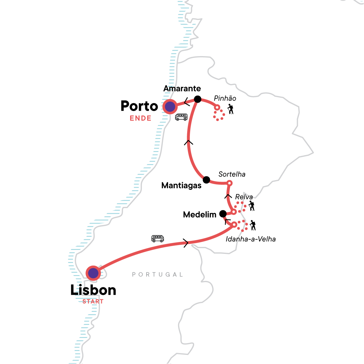 Portugal wird dein Herz erobern auf dieser 8-tägigen aktiven Erlebnisreise, einem Fest für alle Sinne mit der perfekten Mischung aus Stadt- und Landleben. Du spazierst durch mittelalterliche Städte und kleine Dörfer, genießt das beste Essen des Landes mit frischen regionalen Zutaten und wanderst durch die von Weinreben und Olivenhainen geprägte Landschaft des Douro-Tals mit Stopps, um seine köstlichen Weine und weiteren Spezialitäten zu verkosten. Als krönender Abschluss einer perfekten Woche wartet dann noch Porto. Mit diesem Reichtum an Geschichte und Kultur erlebst du Portugal wie noch nie zuvor.